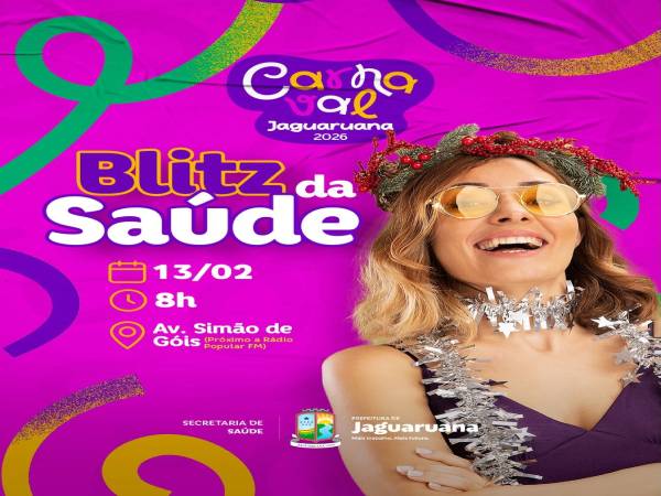 Nesta sexta-feira (13/02), às 8h, tem Blitz da Saúde na Av. Simão de Góis (próximo à Rádio Popular FM).