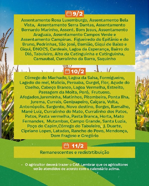 Já está disponível o calendário de entrega de sementes.