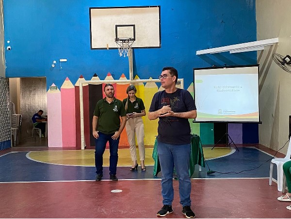 Reflorestamento e Biodiversidade foram temas debatidos durante uma palestra com técnicos e os estudantes na sede da escola.