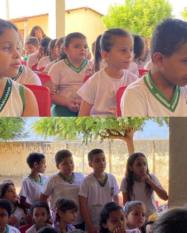Sorrisos largos na escola Raimundo Sales Façanha, no distrito do Sargento. Isto porque a Secretaria de Meio Ambiente, em parceria com a Secretaria de Educação da Prefeitura de Jaguaruana, entregou aos alunos da unidade a premiação individual da Gincana Ambiental 2025.