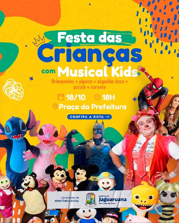 Musical Kids, brincadeiras, muitas gostosuras e diversão garantida em uma noite preparada com muito carinho pela Secretaria de Assistência Social da Prefeitura de Jaguaruana.