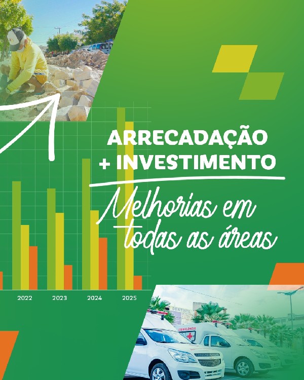 Mais credibilidade e respeito às contas públicas garantiram um cenário perfeito ao aumento da arrecadação nos últimos anos no município de Jaguaruana. Escolas reformadas e de qualidade, mais espaços públicos, salários em dia tudo isto - e muito mais - só é possível com uma organização que assegure arrecadação, responsabilidade e aplicação do dinheiro no lugar certo. É com transparência que seguimos trabalhando para que Jaguaruana cresça cada vez melhor, com mais trabalho e mais futuro.