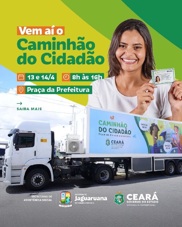 O Caminhão do Cidadão estará na Terra da Rede, nos dias 13 e 14 de abril, na Praça da Prefeitura, das 8h às 16h, com serviços gratuitos de documentação para toda a população!