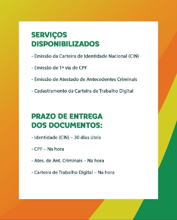 Nos dias 13 e 14 de abril, na Praça da Prefeitura, das 8h às 16h, com serviços gratuitos de documentação para toda a população!