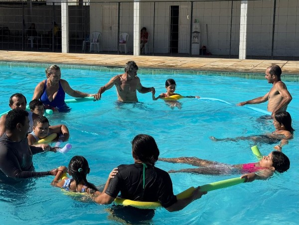 Nesta Semana do Autismo, o CAPS de Jaguaruana promoveu hoje cedo o Grupo de Hidroterapia na piscina da Secretaria de Cultura