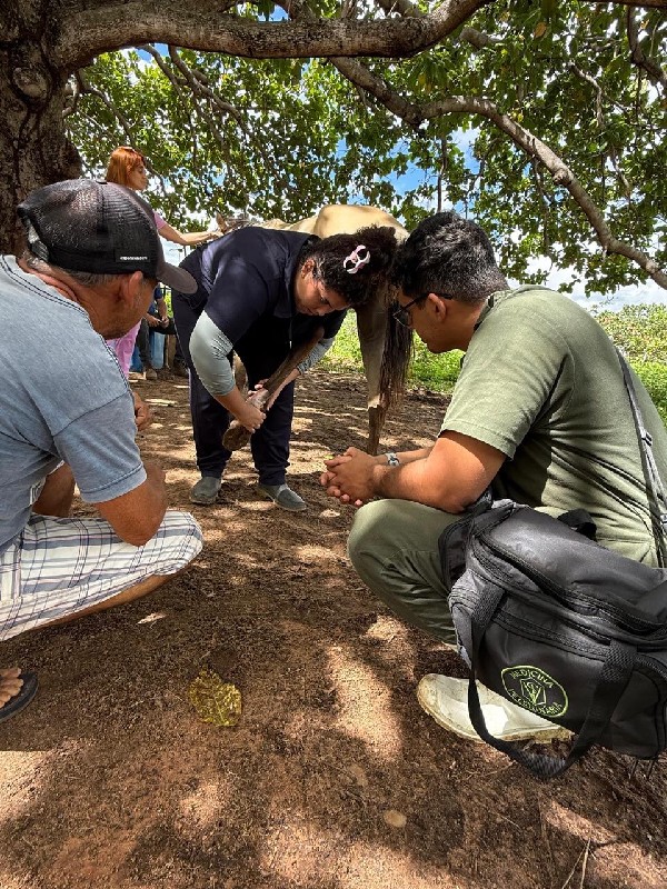 A Secretaria de Agricultura da Prefeitura de Jaguaruana esteve nas comunidades realizando o manejo sanitário do rebanho e o atendimento clínico veterinário, levando suporte técnico diretamente ao produtor rural.