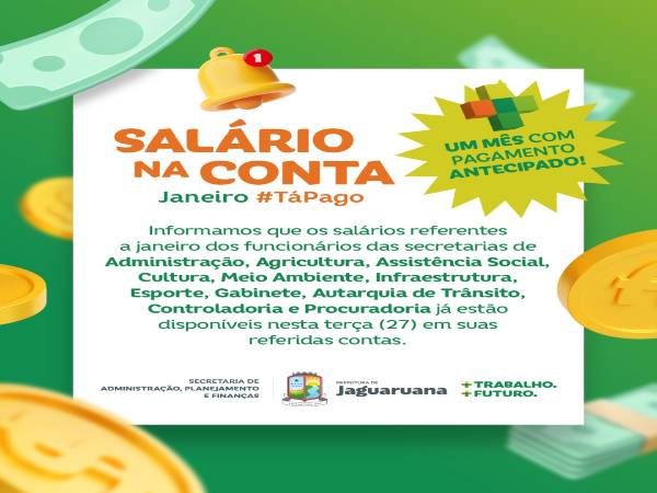 O Governo Municipal de Jaguaruana através da secretaria de Agricultura, já efetuou o pagamento neste ultimo dia 15/03/2017 da primeira parcela do Garantia Safra no valor de R$ 8.466,00 (Oito Mil, quatrocentos e sessenta e seis reais) em 6 parcelas que subseguem nos próximos dias 15 de cada mês, até agosto de 2017. O agricultor contribui com uma única parcela no valor de R$17,00 (dezessete reais). Para cada produtor cadastrado no programa a prefeitura paga o valor de R$ 51,00 (cinquenta e um real) o que representa 996 agricultores, totalizando um valor de R$ 50.796,00 (cinquenta mil, setecentos e noventa e seis reais) pagos pelo Governo Municipal de Jaguaruana. O Governo do Estado e a União também efetuam suas parcelas de contribuição.