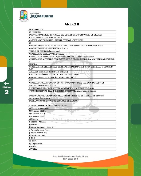 A Prefeitura de Jaguaruana publicou, no ultimo dia 15 de janeiro, quinta-feira, o Edital de Convocação nº 002/2026, convocando os candidatos aprovados no Processo Seletivo nº 005/2025.