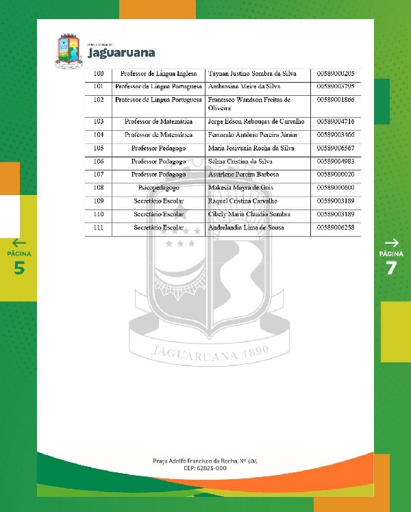 Local: Departamento de Recursos Humanos - Prefeitura de Jaguaruana