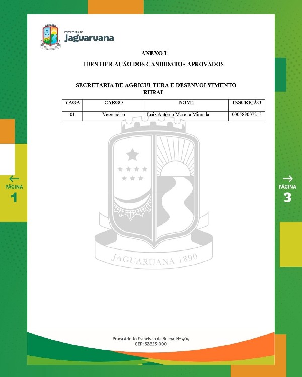 - Prefeitura de JaguaruanaConfira todos os detalhes no edital e anexos.