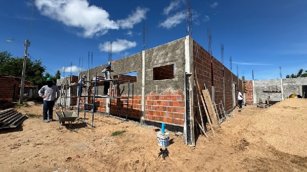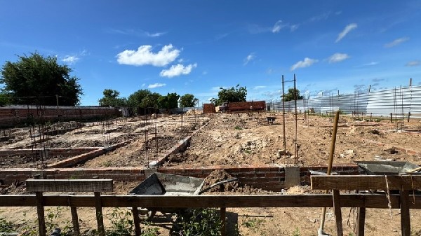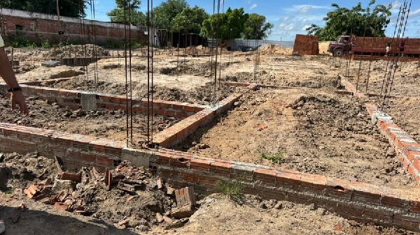 Colunas erguidas e paredes avançando marcam uma nova fase desta conquista financiada com recursos do FUNDEB.