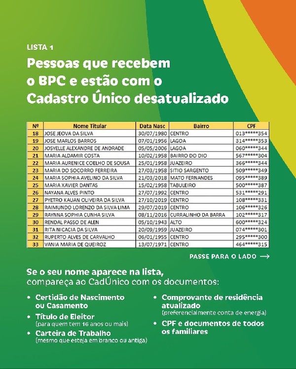Fique atento. Mantenha seu Cadastro Único em dia e garanta a continuidade do seu direito. A não atualização ou ausência de cadastro pode causar intercorrências no recebimento do benefício.