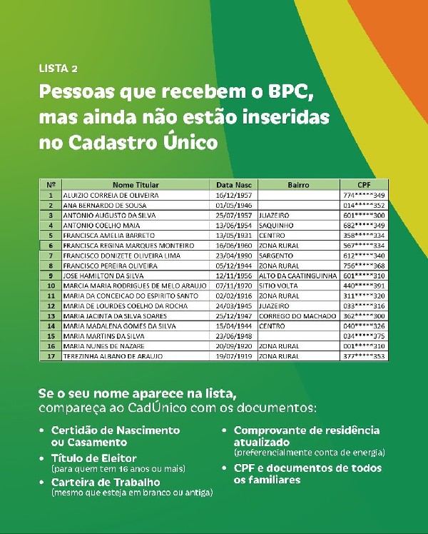 Prefeitura de Jaguaruana torna públicas listas importantes relacionadas ao Benefício de Prestação Continuada (BPC)!