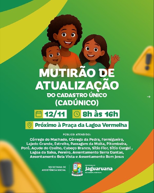 A partir de manhã tem Mutirão de Atualização do Cadastro Único (CadÚnico) pela zona rural.