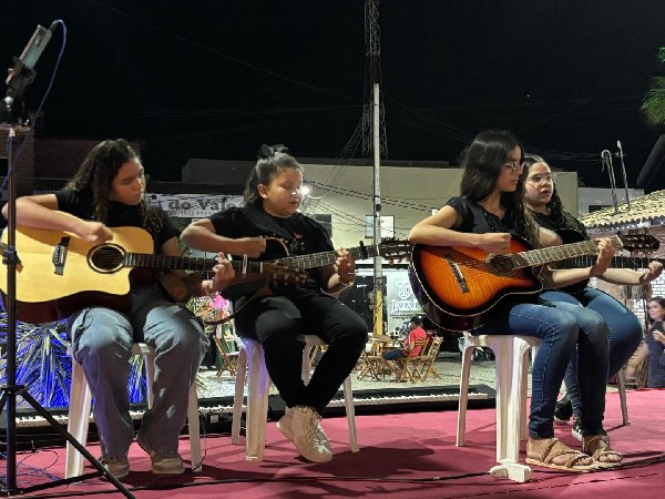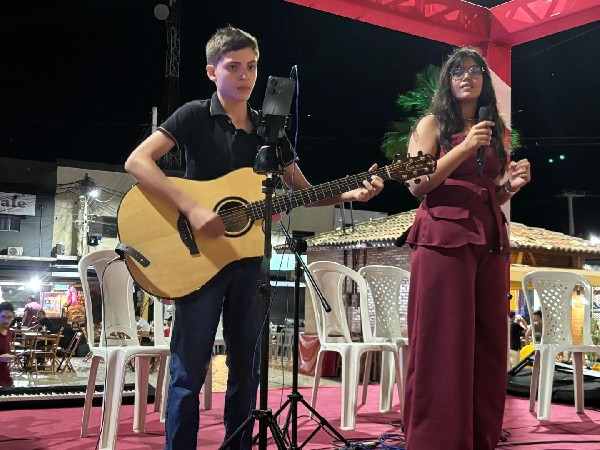 A noite foi marcada por apresentações musicais que encantaram o público presente com os alunos do projeto Teclas e Cordas, além de canto e violão com Armazém Musical.
