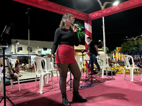 O Natal está chegando e a Secretaria da Cultura e Turismo da Prefeitura de Jaguaruana promoveu uma noite bem especial, neste domingo (14), na praça Adolfo Francisco da Rocha, no Centro. Teve muito som com os alunos do projeto Teclas e Cordas, além de canto e violão com Armazém Musical.
